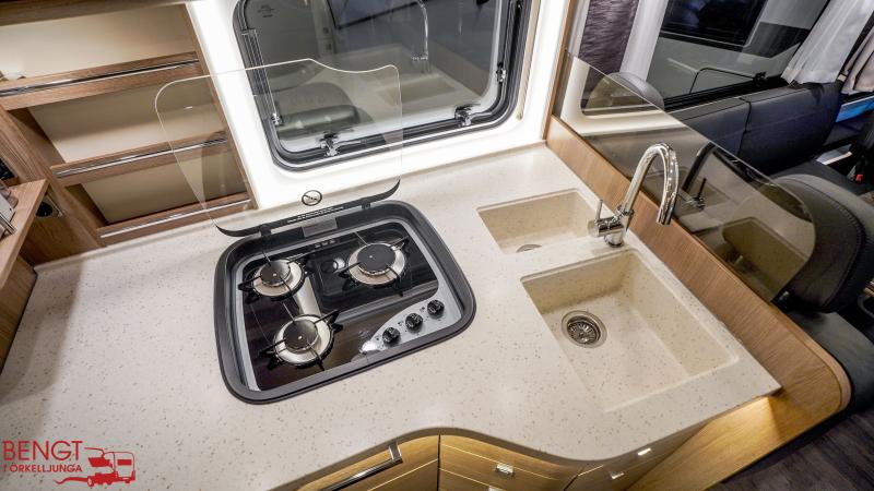 150 ltr. gastank, extern påfyllning genom anslutning i sidovägg, nivåindikator i kontrollpanelen